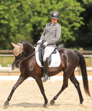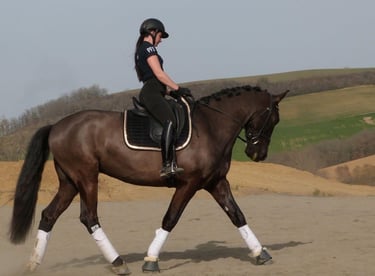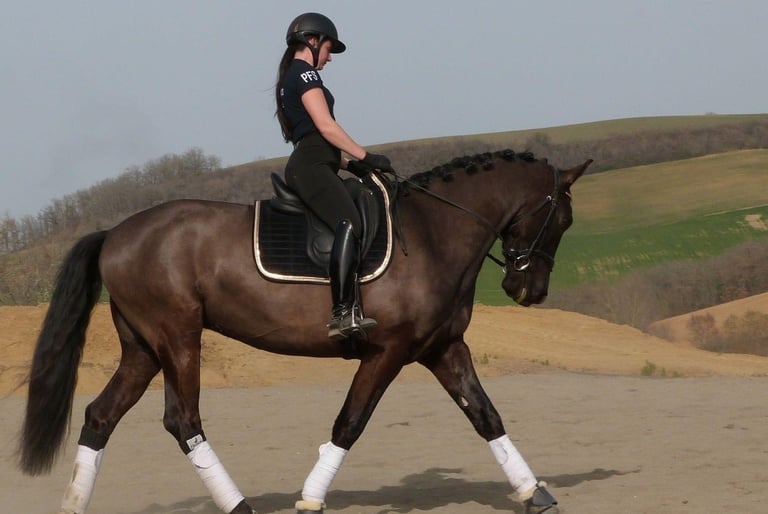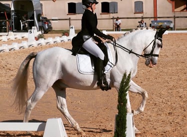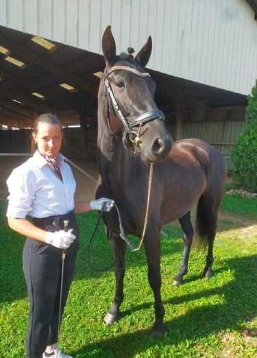 Lucile est une passionnée de dressage. Elle consacre beaucoup de temps à entraîner ses chevaux ainsi que les chevaux de ses clients et à atteindre différents objectifs avec eux. Elle aime ressentir la connexion avec les chevaux pendant les séances d'entraînement et voir les progrès qu'ils réalisent ensemble. c'est ce qu'il la motive chaque jour. Elle est déterminée à améliorer constamment ses compétences en dressage et à développer une relation de confiance et de respect avec ses chevaux. Le dressage demande du temps, de la patience et de la persévérance, mais cela en vaut la peine pour elle.